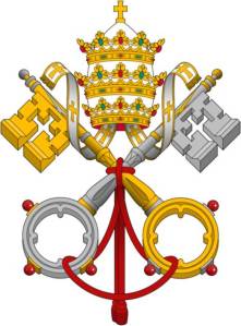‘The Triregnum (the Papal Tiara formed by three crowns symbolizing the triple power of the Pope: father of kings, governor of the world and Vicar of Christ) from the XVIII Century, with which the bronze statue of Saint Peter is crowned every June 29th, the feast day of the Saint.Use of the Tiara, a ritual during solemn ceremonies, was abandoned during the Papacy of Paul VI.The Tiara is a headdress ending in an ogive and made of silver, and during the times of Boniface VIII two crowns were added, and from 1314 three crowns (the reason it is called the triregnum), topped by a small globe with a golden cross.Among the various interpretations, we shall mention the one that says that the three crowns represent the militant, the suffering and the triumphant Church.The shape of the Triregnum varied throughout the years. We may find it represented as more or less rounded, in some cases without the globe and the cross. At times there is a modified position of the ribbons (two ribbons with a patent cross hanging).