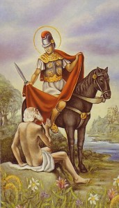 - On November 11 we celebrate the feast of St. Martin of Tours. Family Formation students all spent time learning about him in the classroom this month, so be sure to have them tell some details from his remarkable story. They also may have gotten a holy card picturing him as a soldier sharing his cloak with a beggar. This would be a great day to review what they’ve learned and to display that card on your prayer table.