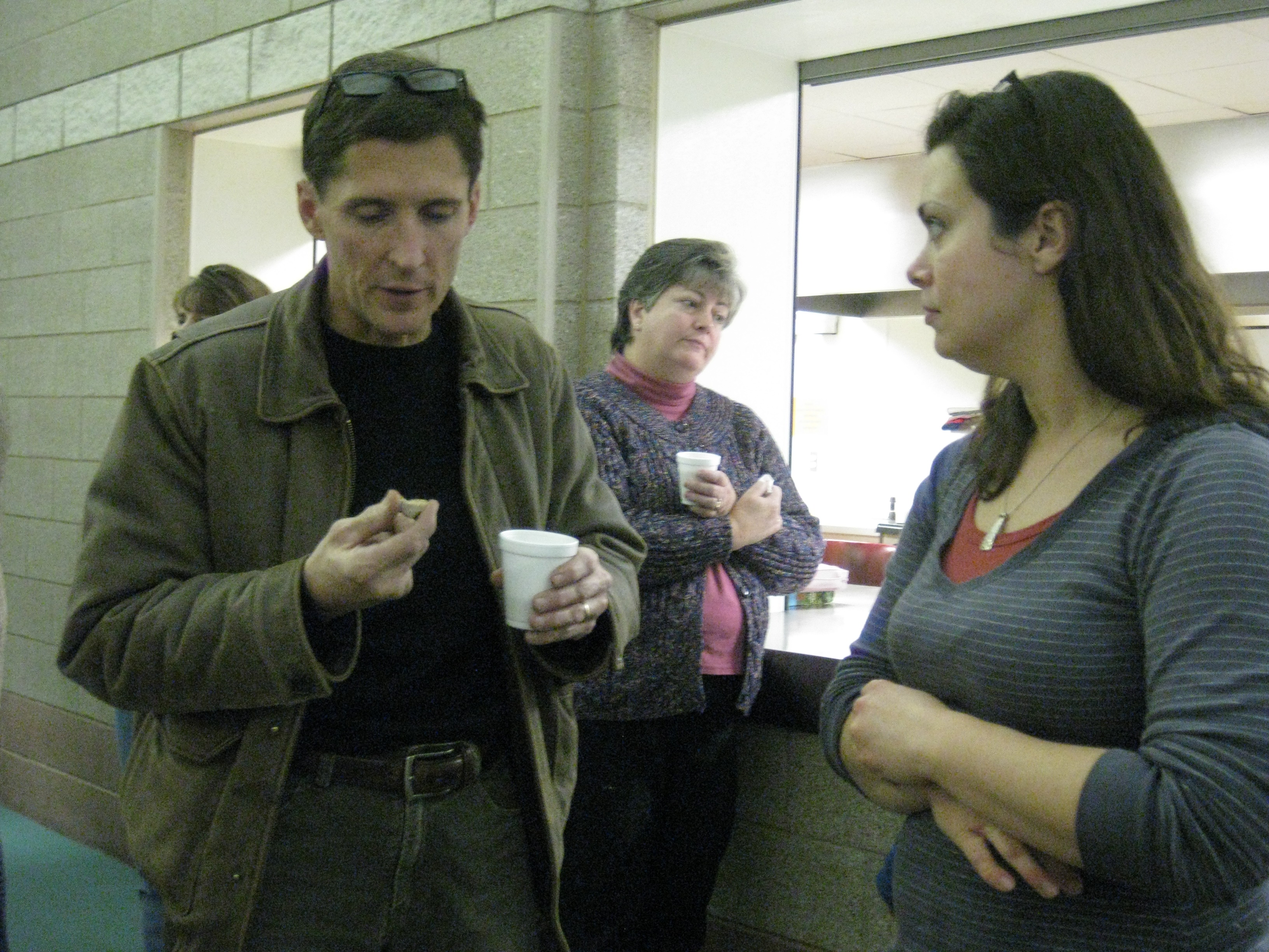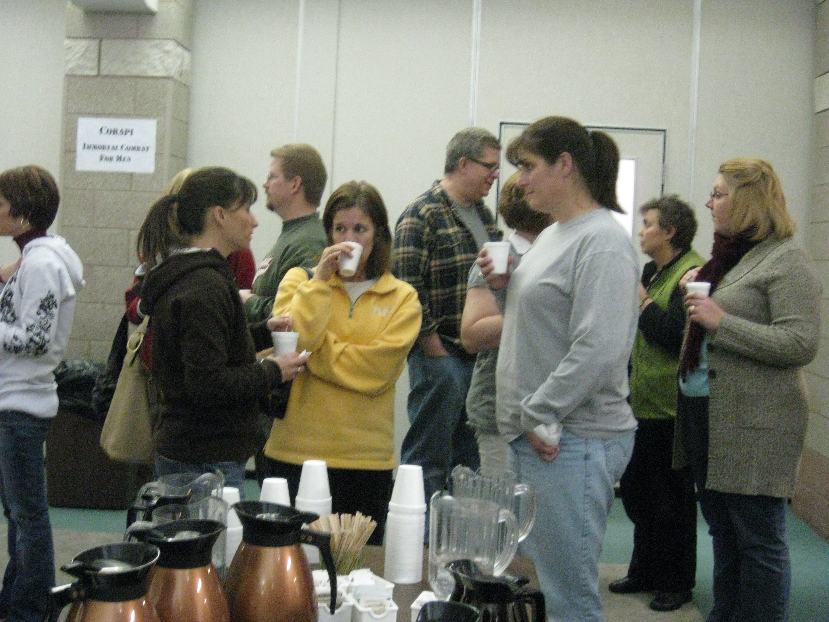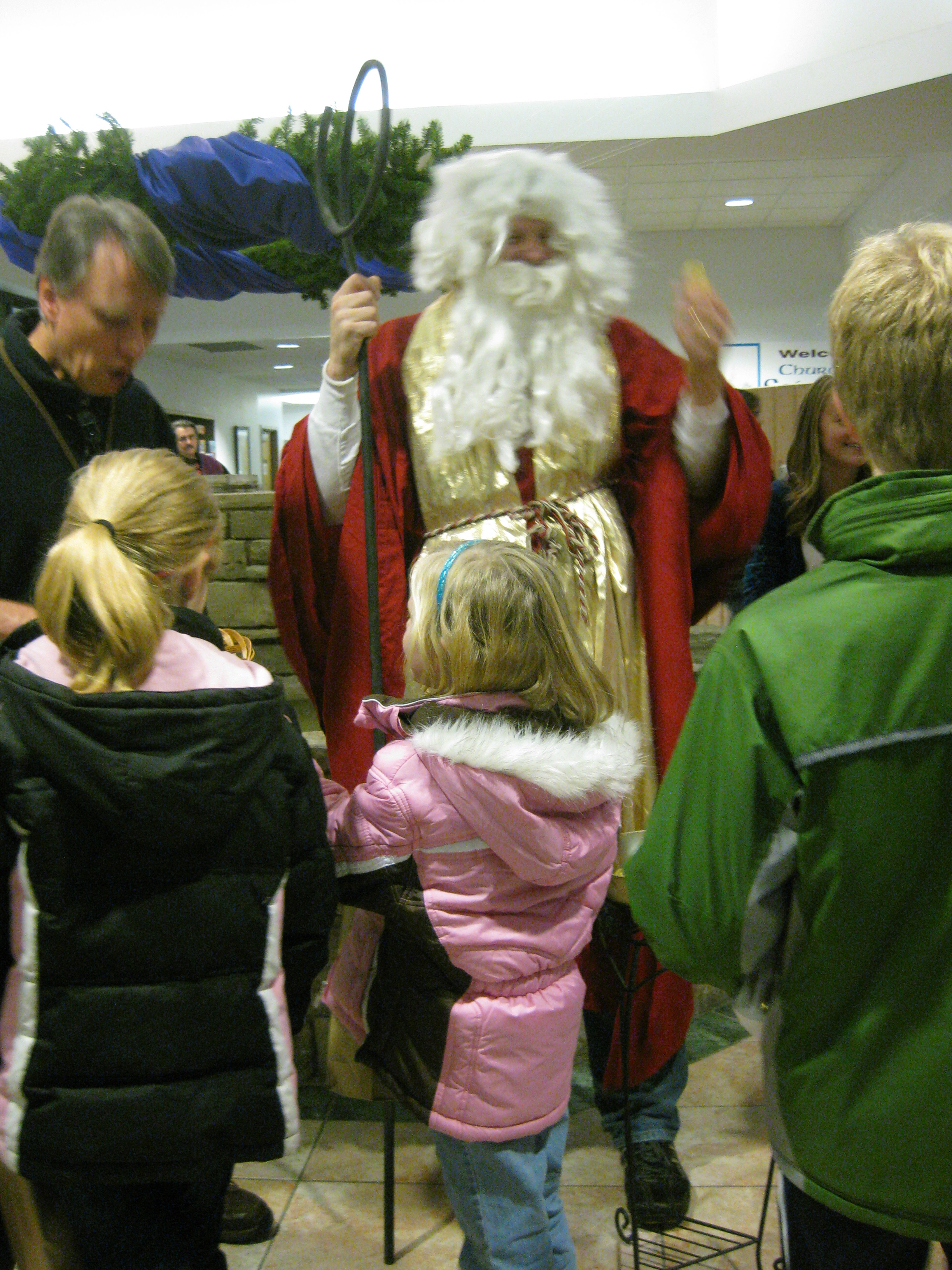 We were greeted by our regular “guy in red” and another one handed out chocolate coins at the end of the evening! Also, thanks to one parent’s suggestion (and hard work to make it happen), the parents were able to take a little coffee break – complete with home-baked Christmas cookies! It was a fun evening of learning more about the Incarnation and enjoying a little fellowship. Thanks to our extra volunteers who made it all happen!