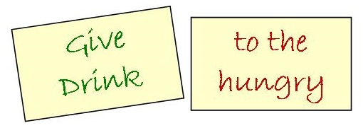 - On the other cards write the recipient of the action. (the hungry, the thirsty, the homeless, the naked, the sick, the imprisoned, the dead)