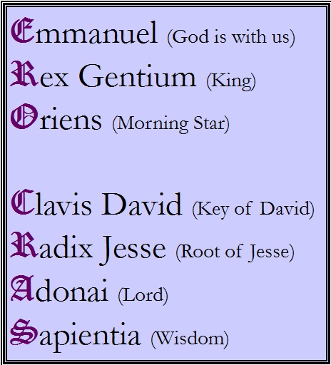 Of course they each individually point the way to the coming of the Messiah, but if you look at them all together, you’ll see a not-so-secret message. Take the first letter of each of the titles in Latin and arrange them in order from last to first and you’ll get the words Ero Cras. Translate it and you’ll learn that “Tomorrow I Come.” (Isn’t that cool?!)