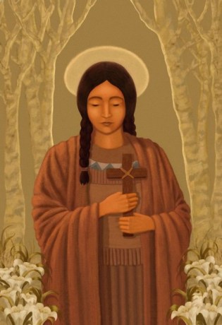 Known as the Lily of the Mohawks, Kateri was a convert and catechist to the Mohawk – Algonquin people in what is now upstate New York/Canada.  She beatified in 1980 and is already known as a patron of stewardship of the environment.