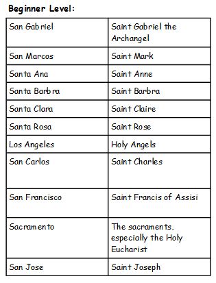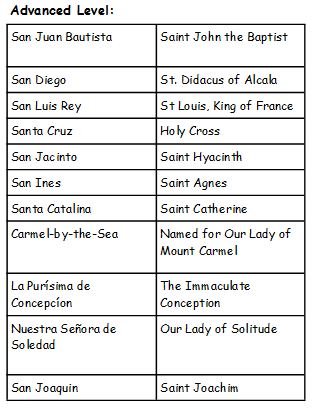 Spanish missionaries gave Catholic names to many places in California. See if you can tell what or who is being honored in a few of these names listed below: