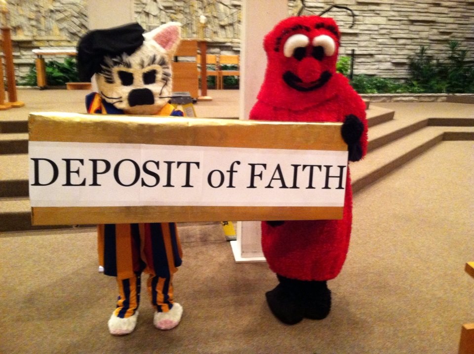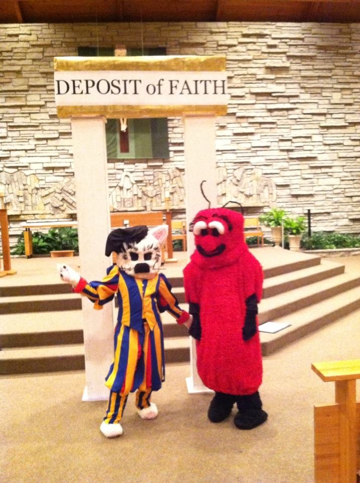 We could hardly wait to introduce our new mascot to Family Formation families at the Church of Saint Paul this month! As much as we LOVE to encourage reading the Bible, Catholics know that Scripture doesn’t stand alone, so our W.O.G. needed a friend. He spent a long time in the planning stage and we’re so grateful to the talented parishioner who created the costume!