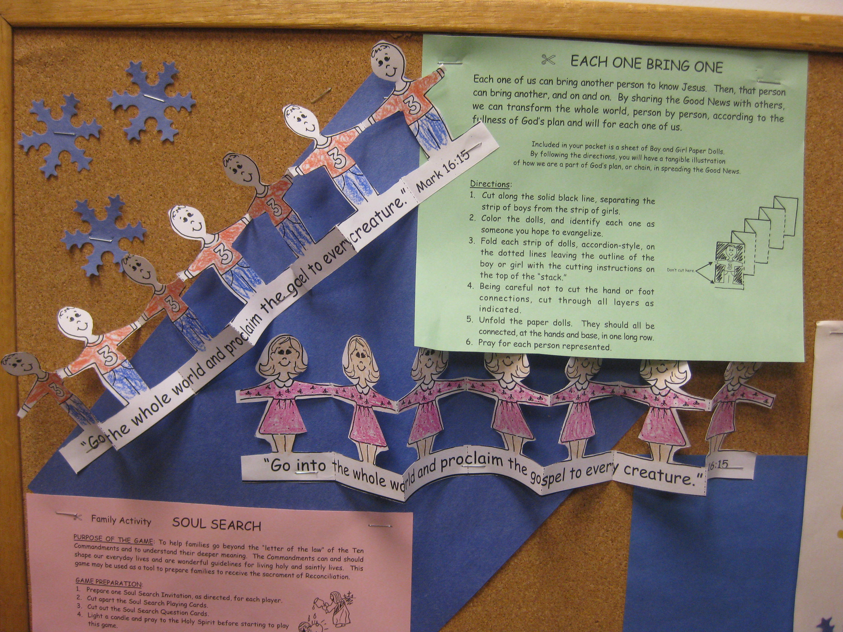 Each One Bring One: The craft part of this activity is to create one of those zig-zag, linked sets of paper dolls (do those have a particular name?), but the idea behind it is so much deeper! Going as far back as possible in your family history (even if that just means you start with yourself), talk about the Christian influences that have influenced you today. Was it a Grandma who always brought you to Mass, or a neighbor who was so kind, or the parent who prayed with you at bedtime? Everyone has stories and sometimes it’s the most ordinary influence which has had the greatest effect. Take some time to prepare by thinking about those people and then share the stories with your kids. At some point be sure to remind your kids that you are currently passing the Faith on to them and someday (maybe someday soon) they will be passing it on to someone else. Not only is it exciting to consider, but you want to make sure they catch the vision. You’ll want to be sure to do this one!
