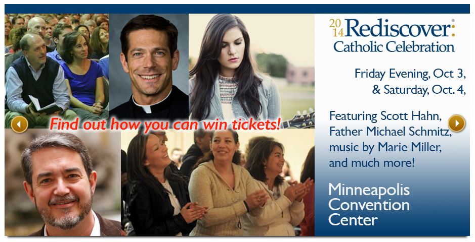 Registration is still open for the 2nd annual Rediscover Catholic Celebration sponsored by the Archdiocese of Saint Paul/Minneapolis, but I’m pretty sure they sold out last year, so don’t wait too long! It’s a fantastic opportunity to get together with several thousand brothers and sisters in the Faith, to hear nationally-known Catholic speakers, visit with great vendors, and hear inspiring music. Friday is geared toward young adults (18-39 in the Church’s mind) and Saturday offers programs for kids in grades K-10, in addition to the adult program. You can register here or check out these ways you can win tickets.