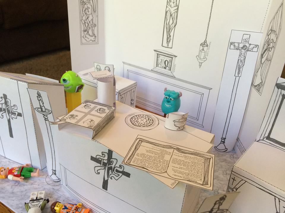 They’re part of our Home Lesson activity on the Mass. Each registered family was provided with a set and invited to assemble them for their children to play with.