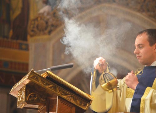 One really good illustration of these ways Christ is present at Mass happens when incense is used. Among other things, incense is used as a sign of honor for that which is sacred (and nothing is more sacred than Jesus!). Next time you’re at a Mass with incense, notice some of the times it’s used: