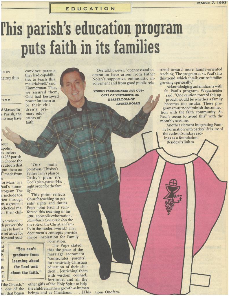 One of the joys of doing a little cleaning is running across treasures from years ago. Today Deb found this article about Family Formation from the March 7, 1993 edition of Our Sunday Visitor.