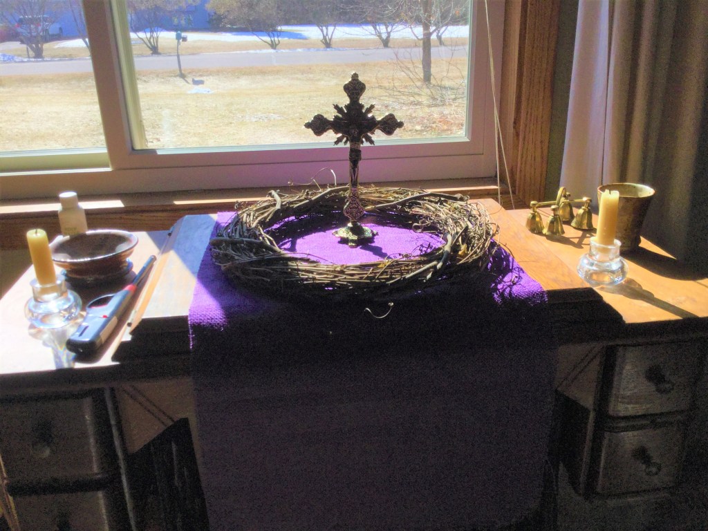 Once you find a space, actually pulling it together is much easier than you think. This article from our archives will be helpful. Using candles and the liturgical colors of the Church will help you stay connected with your parish even when you can’t be there. And if you have a priest paper doll, be sure to help Father dress for Mass and invite him into your family’s prayer times.