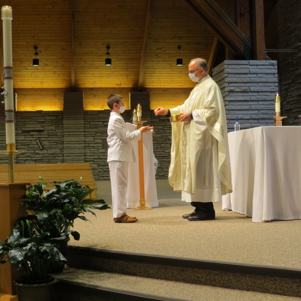 It looks like for a while, through the upcoming round of transitions, our first Communicants are going to have experiences that are all just a little different. The one perfect Constant is Jesus! Here are a couple of photos from today’s first Communion.