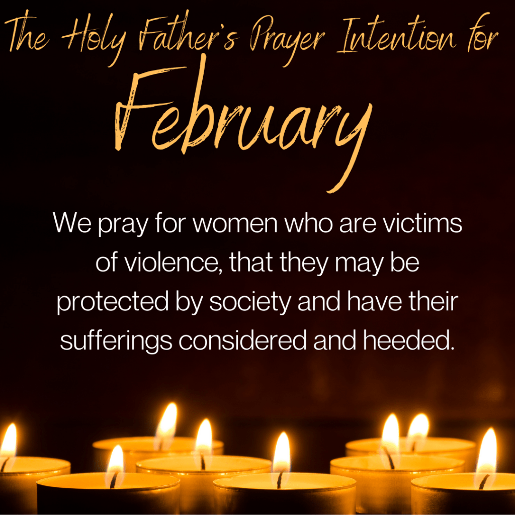 February 1, 2021January 13, 2021 Sue Klejeski Violence Against Women Each year, the Holy Father asks for our prayers for a specific intention each month. You are invited to answer the Holy Father’s request and to join with many people worldwide in praying for this intention in February. Share this:Share Print (Opens in new window) Print Email a link to a friend (Opens in new window) Email Share on Facebook (Opens in new window) Facebook Share on X (Opens in new window) X Share on LinkedIn (Opens in new window) LinkedIn Share on Tumblr (Opens in new window) Tumblr Share on Pinterest (Opens in new window) Pinterest Share on Reddit (Opens in new window) Reddit Like Loading...