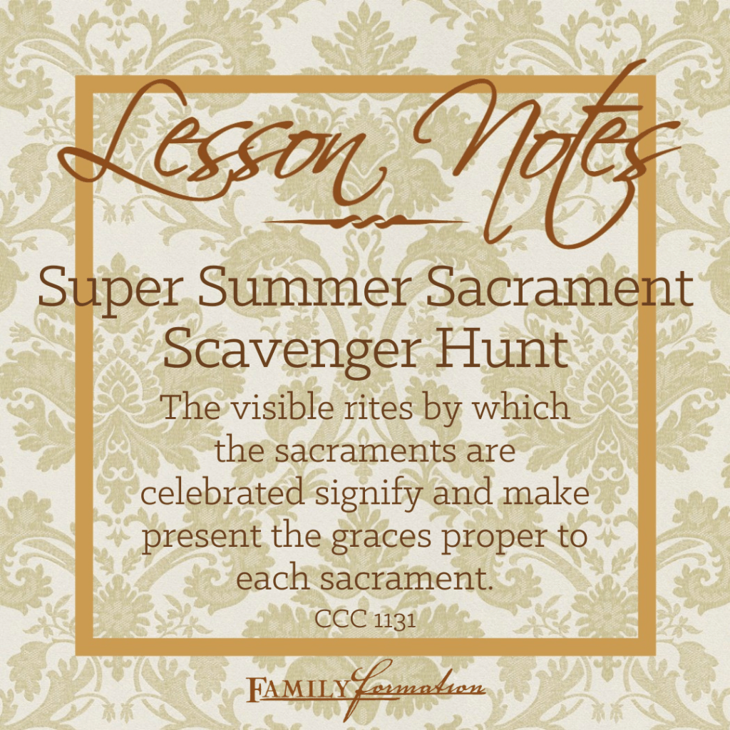 Family Formation may be ending for the year, but that doesn’t mean you need to take a vacation from learning about your Catholic faith! This summer, as you go on vacation and attend Mass at other churches, take this scavenger hunt along with you, and try to find some signs and symbols of our Faith. This book contains information about many of the things you’ll find in Catholic churches and during celebrations of the sacraments, but there are many, many more. If you find something in a church and don’t know what it is or what it represents, have your parents help you look it up! http://www.newadvent.com, http://www.catholic.com, and The Catholic Source Book by Rev. Peter Klein are good places to start.