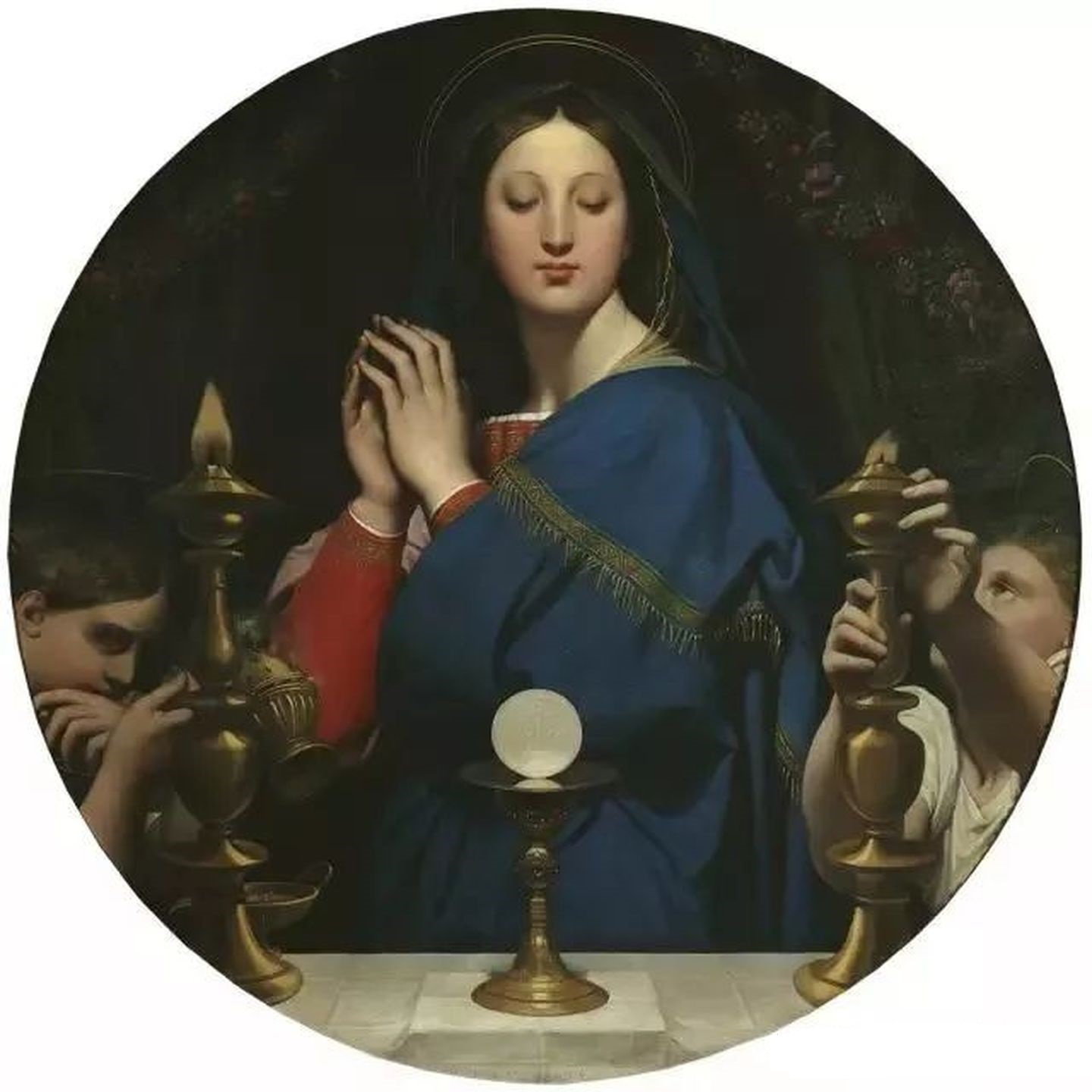 Introduce this month’s theme with your prayer table art. We’re studying the Real Presence of Christ in the Eucharist and will be spending time in some guided Eucharistic adoration. To introduce that purpose, this piece by Jean-Auguste-Dominique Ingres would be an ideal addition to your prayer table. (Click the image for a higher resolution version.)