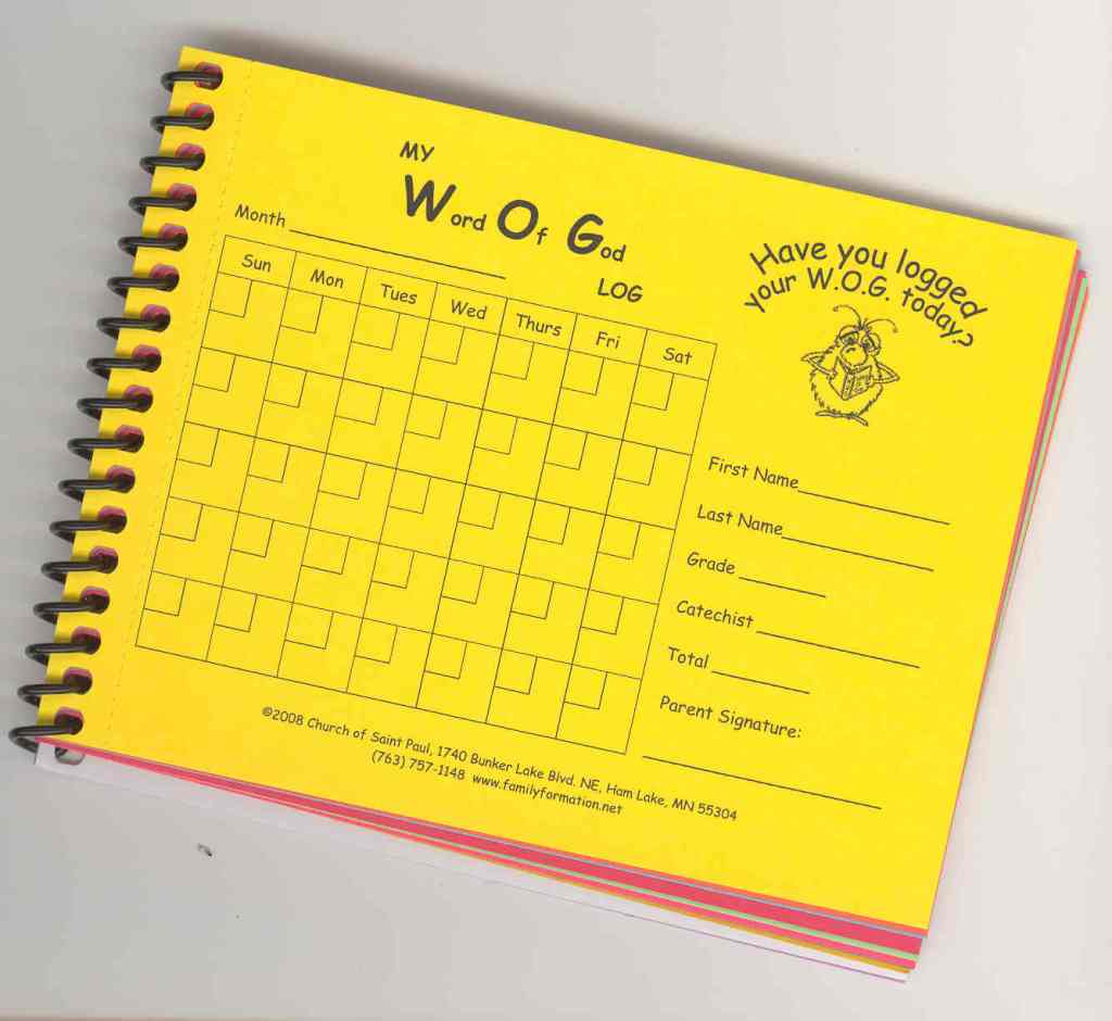 Maybe most important is his work with the W.O.G. Logs. Each month, we encourage kids to keep track of days they’ve remembered to read God’s Word and to bring their card to the next month’s at-church meeting. At the Church of Saint Paul program, kids can bring their completed W.O.G. Log card back to the next Family Formation meeting to be entered in a drawing for a prize, but the real prize is developing the habit of reading Scripture.