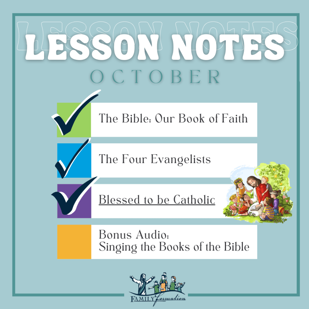 In a general sense, the goal of this lesson is to teach each of us about our place in the Universal Church and that can be a big, anonymous topic (certainly hard for your little ones to grasp), so we want to bring it down to a personal level.