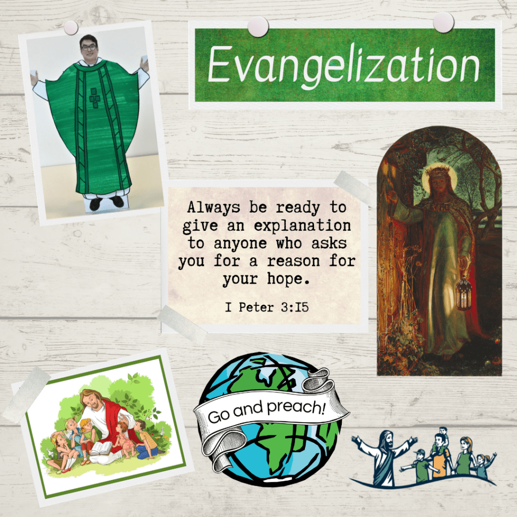 The bottom line is that evangelization is active – it’s something you DO and there are lots of activities for you to do in this lesson to help illustrate different aspects of the topic.