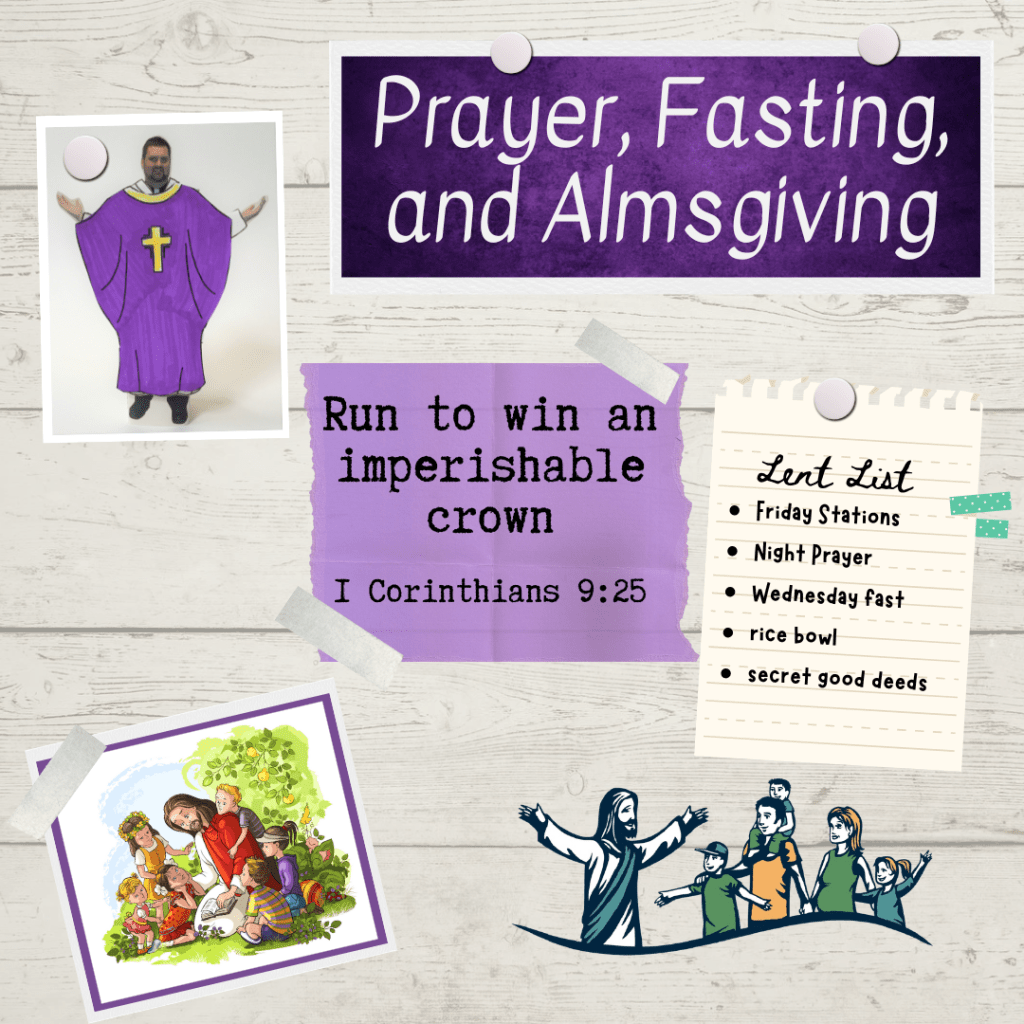 It’s quite simple: we’re going to go over the basics of Lent focusing on prayer, fasting, and almsgiving, and will give practical suggestions on how you can implement them all into your family life. These are three ancient, proven paths to growth in holiness. You’ll find them all over the place in Scripture, but also in the lives of the Saints, in the liturgy … really whenever anyone is giving any kind of spiritual advice prayer, fasting, and almsgiving are going to be the stars.