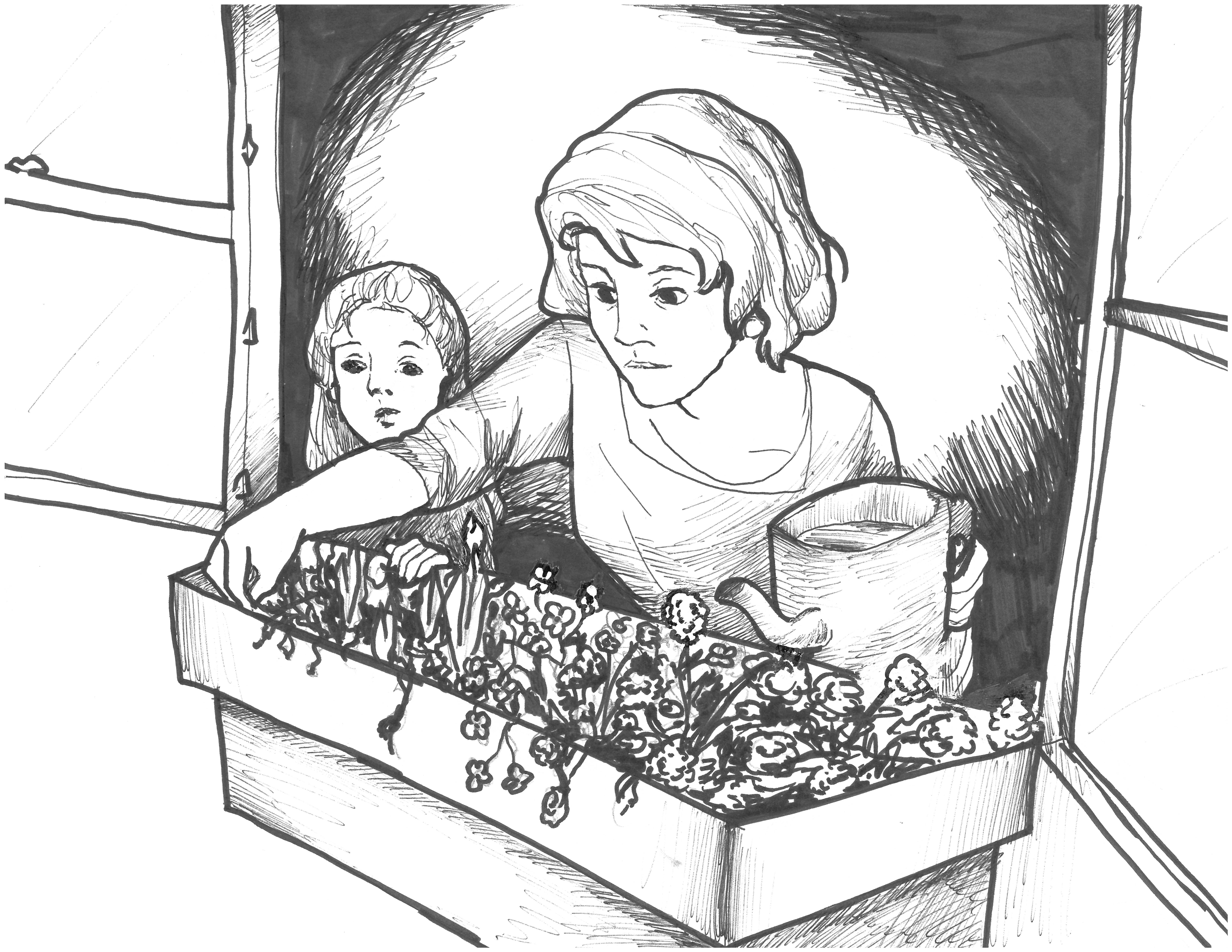 On this bright Sunday morning, Mom looked out at her window box. The family vacation had left some of the flowers looking pretty rough. Weeds were invading the tulips, and the pansies were being overcrowded by the marigolds. The petunias hadn’t even come up, yet the geraniums were more than hardy.