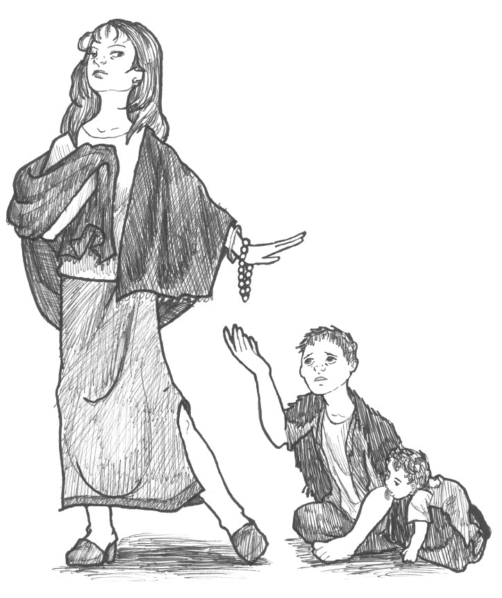 “Okay, Mary Clare, you can be the rich person,” Dad said as he handed her a purple shawl to throw over her shoulder. “Vincent will be Lazarus. Lucy will be Father Abraham; Hillary and Mom, the angels; and Ben, the dog. I’ll be the narrator. Everyone ready?” And amidst a flurry of white beards, halos, tails, and robes, the reading began.