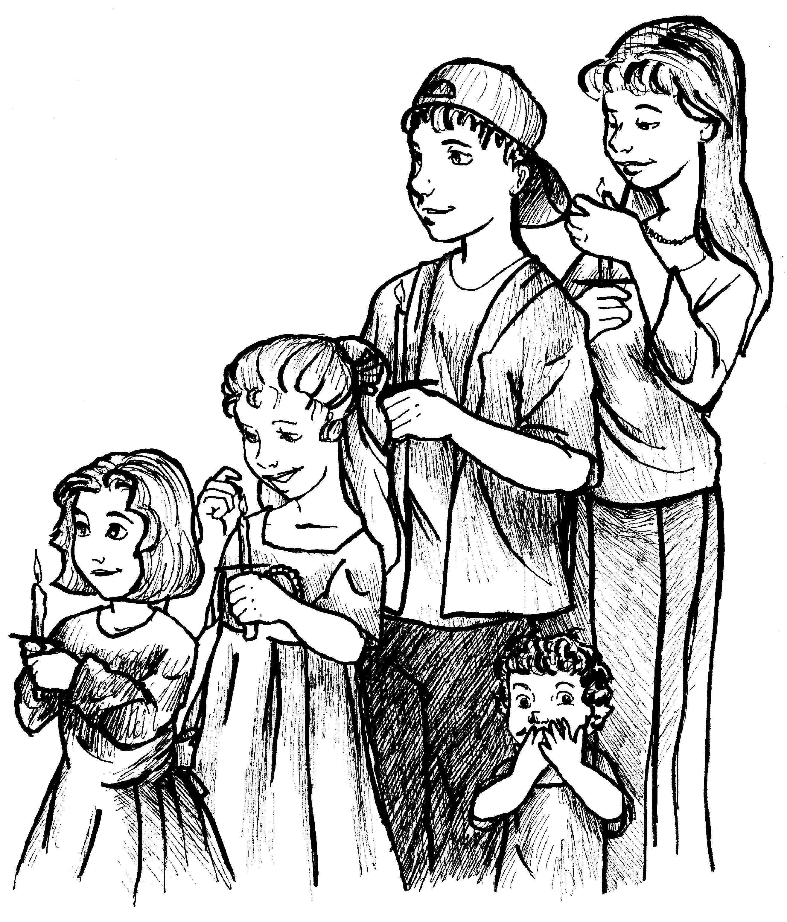 “You’ll see,” said Mom. “For today’s reading, I want you four to stand in a straight line and hold one of these.” Mrs. Pauline handed a candle to Vincent, Hillary, Lucy, and one to Mary Clare. “Now, I think we’re ready,” she said to her husband.