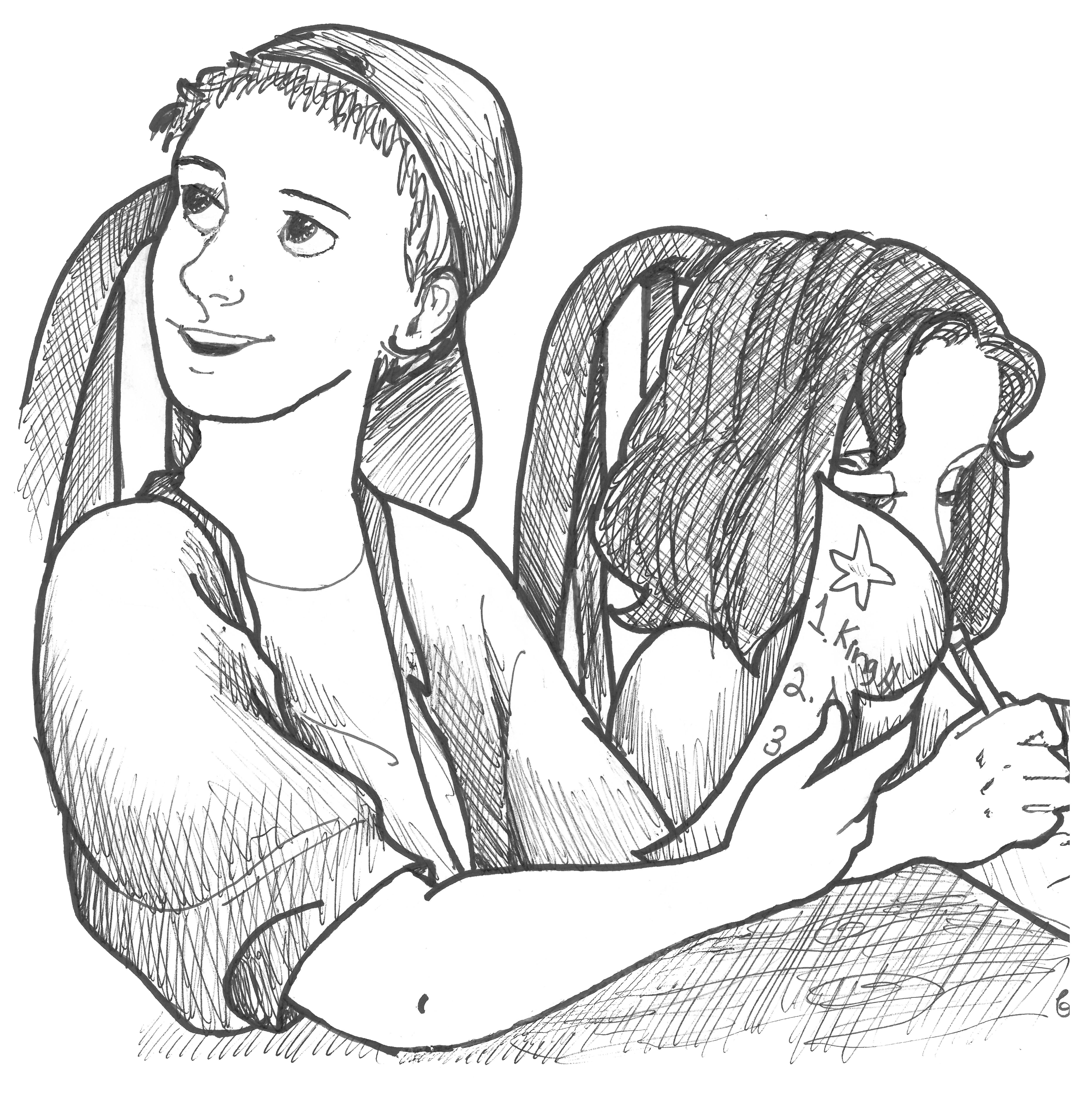 They all wrote, and whispered their answers, and looked up, waiting for question number four.